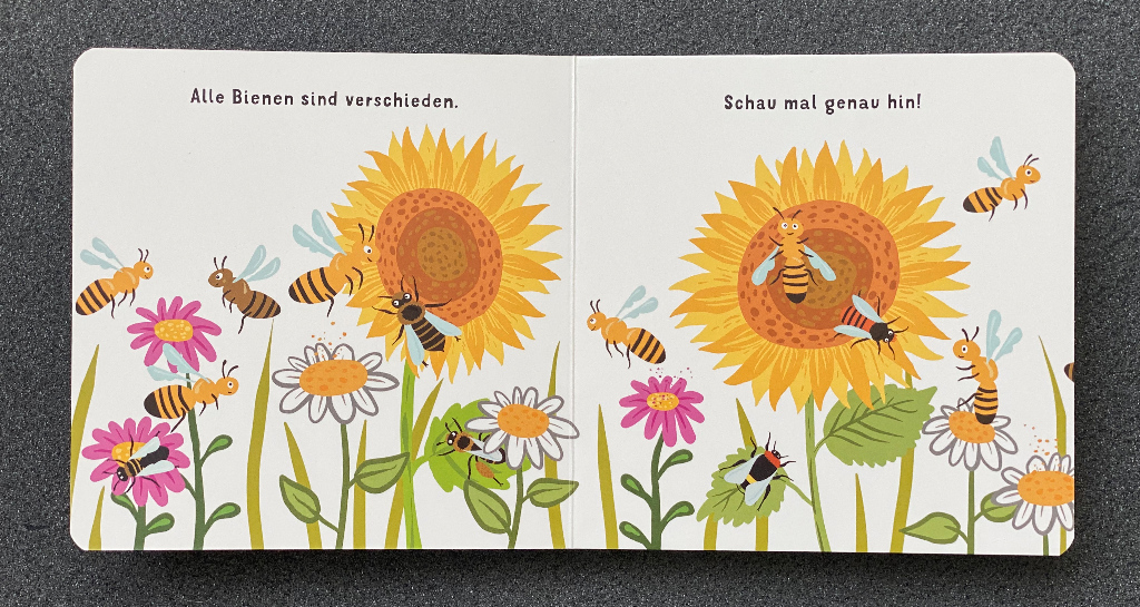Wer schon den Jüngsten erstes Sachwissen über die Natur und besonders den Bienen vermitteln möchte, der ist bei Judith Drews genau richtig. Denn mit ihrem Pappbilderbuch „Unsere Bienenfreunde“ gelingt es ihr nicht nur, in einfachen Worten alles Wissenswerte zusammenzutragen, sie weckt damit bei den Kleinsten auch die Aufmerksamkeit und das Bewusstsein für unsere Umwelt. Ein schönes Buch, sowohl hinsichtlich des Inhalts, als auch wegen der entzückenden Illustrationen.