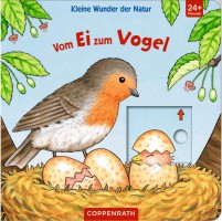 Mit „Vom Ei zum Vogel“ lädt Sybille Brauer Kleinkinder einmal mehr dazu ein, die kleinen Wunder der Natur zu bestaunen. Mit tollen, realistischen Bildern und einfach formulierten, wenn auch nicht immer geglückten Beschreibungen in Versform zeigt sie ihnen, wie aus einem Ei ein Vogel schlüpft und heranwächst.