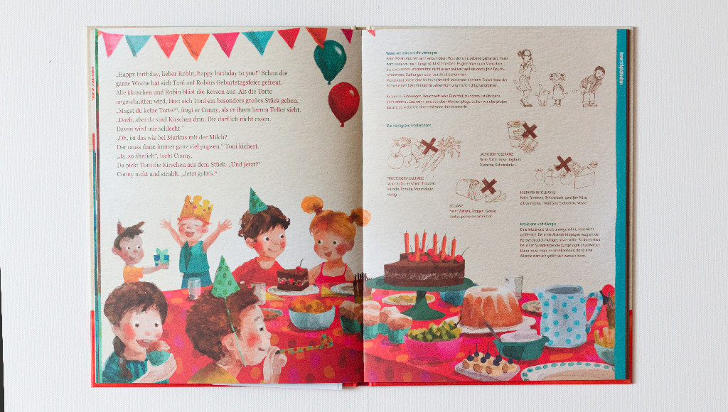 Die Liste der Symptone und Gründe für Bauchschmerzen ist lang. Julia M. Nagy und Bine Penz kürzen sie für Kinder auf das Wesentliche zusammen und beschreiben alles altersgerecht und einfach. Dafür bedienen sie sich sowohl kurzer Alltagsgeschichten, als auch erklärender Sachinformationen. Hierfür begleiten wir im Buch den kleinen Buben Toni. Er nimmt uns mit in seinen Alltag zwischen Kindergarten und Familie, erzählt von Geburtstagsfeiern und Ausflügen in die Natur. In diesen Kindern vertrauten Episoden bauen die Autorinnen ihre Sachinformationen ein. Anschaulich und auf Augenhöhe des Lesepublikums beschreiben sie die verschiedenen Ursachen und Gründe für Bauchschmerzen, erklären woher sie kommen und wie man sie lindern kann. Die dabei gegebenen Ernährungs- und Verhaltensratschläge fließen eher nebenbei ein und verzichten auf den erhobenen Zeigefinger. So wird aus dem Buch eine spannende und informative Sachgeschichte, die man immer wieder gerne entdeckt, durchstöbert und aus der man stets etwas mitnimmt.