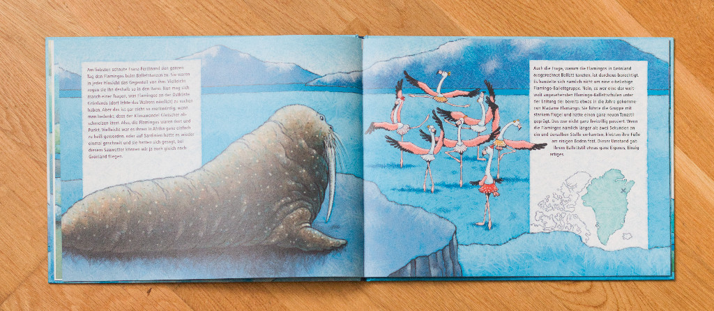Kann man stärkere Gegensätze zum Thema Ausgrenzung finden, als eben ein Walross, das Ballett tanzen möchte? Wohl kaum, denn diese Tiere sind gewiss alles andere als grazil. Und dennoch verbreitet das Buch die Botschaft, an seinen Träumen festzuhalten, äußerst treffend. Fraglich ist in diesem Zusammenhang allerdings, warum im Verlauf der Handlung nicht nur Ferdinand die Schule verlassen muss, sondern auch die Lehrerin. Das macht wenig Sinn und wird auch von den jungen Zuhörer*innen kritisch hinterfragt. Es ist also Erklärungsbedarf seitens der Vorlesenden angesagt.