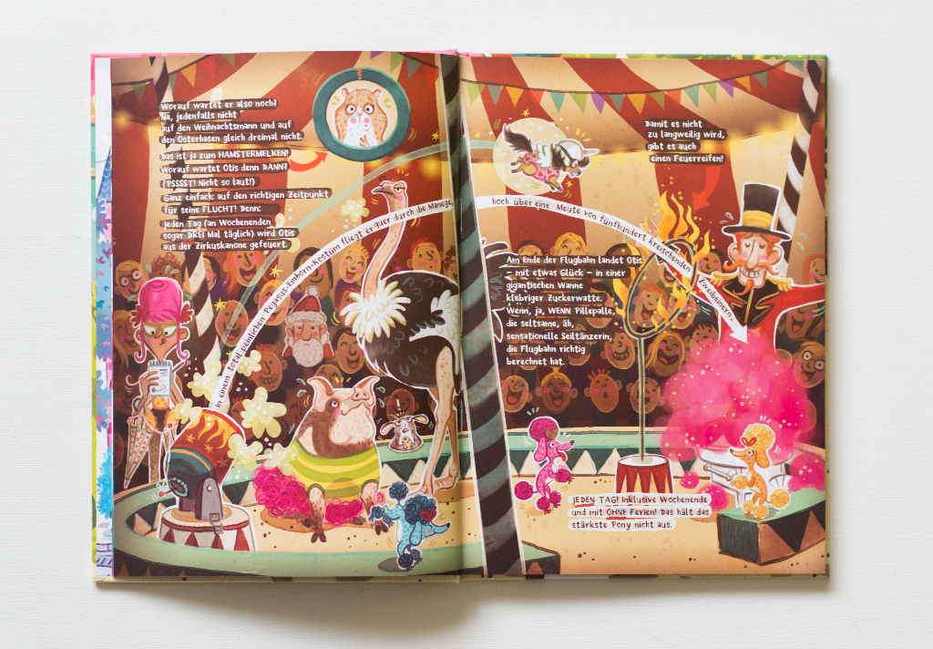 „Otis & Otilie: Ein Pony zum Frühstück“ ist ein buntes, turbulentes und urkomisches Kinderbuch. Es erzählt vom Beginn einer ungewöhnlichen Freundschaft, die jedoch ein paar Anläufe und verrückte Überzeugungsaktionen braucht. Das quietschbunte Design begeistert Kinder und macht das Buch zu einem besonderen (Vor-)Leseerlebnis.