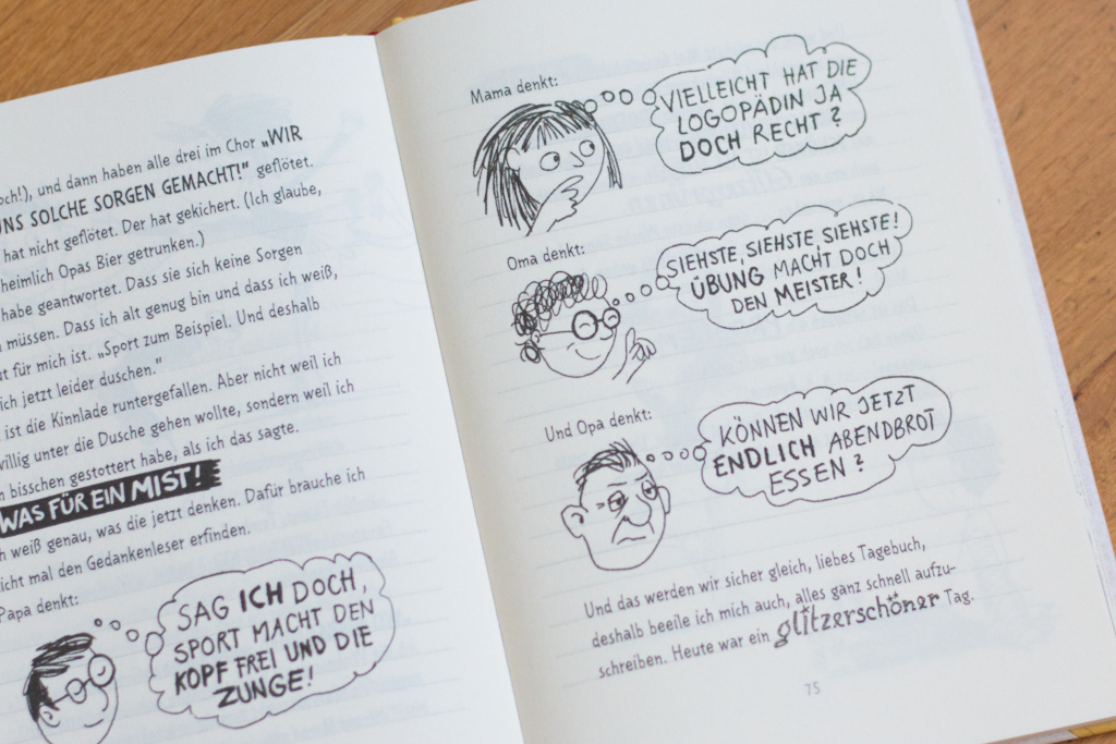 Tomke spricht nicht so gerne. Er hat keine Lust dazu, denn die Worte kommen ihm nur holprig über die Lippen. Darum schickt ihn seine Mama auch abwechselnd zur Ergotherapie, Logopädie, zum autogenen Training und zum Gesprächskreis. Sein Vater ist der Meinung, mit Sport könne man Tomkes Sprechschwierigkeiten auflockern und probiert mit ihm verschiedene Ballsportarten aus. Dabei interessiert sich Tomke gar nicht für blöde Ballspiele. Er ist eher fasziniert von der Glitzergrünen, die in der Sporthalle auf Rollschuhen tolle Figuren macht. Delia kann sogar noch viel mehr. Sie kann Tomkes Gedanken lesen und weiß immer ganz genau, was in ihm gerade vorgeht. Kein Wunder also, dass die beiden sich bald schon anfreunden. Überhaupt findet Tomke, müsse man einen Gedankenleser erfinden, mit dem auch die anderen hören könnten, was er gerade denkt. Dann bräuchte er nicht mehr sprechen und die Worte kämen nicht mehr unvollständig oder zu spät aus ihm heraus.