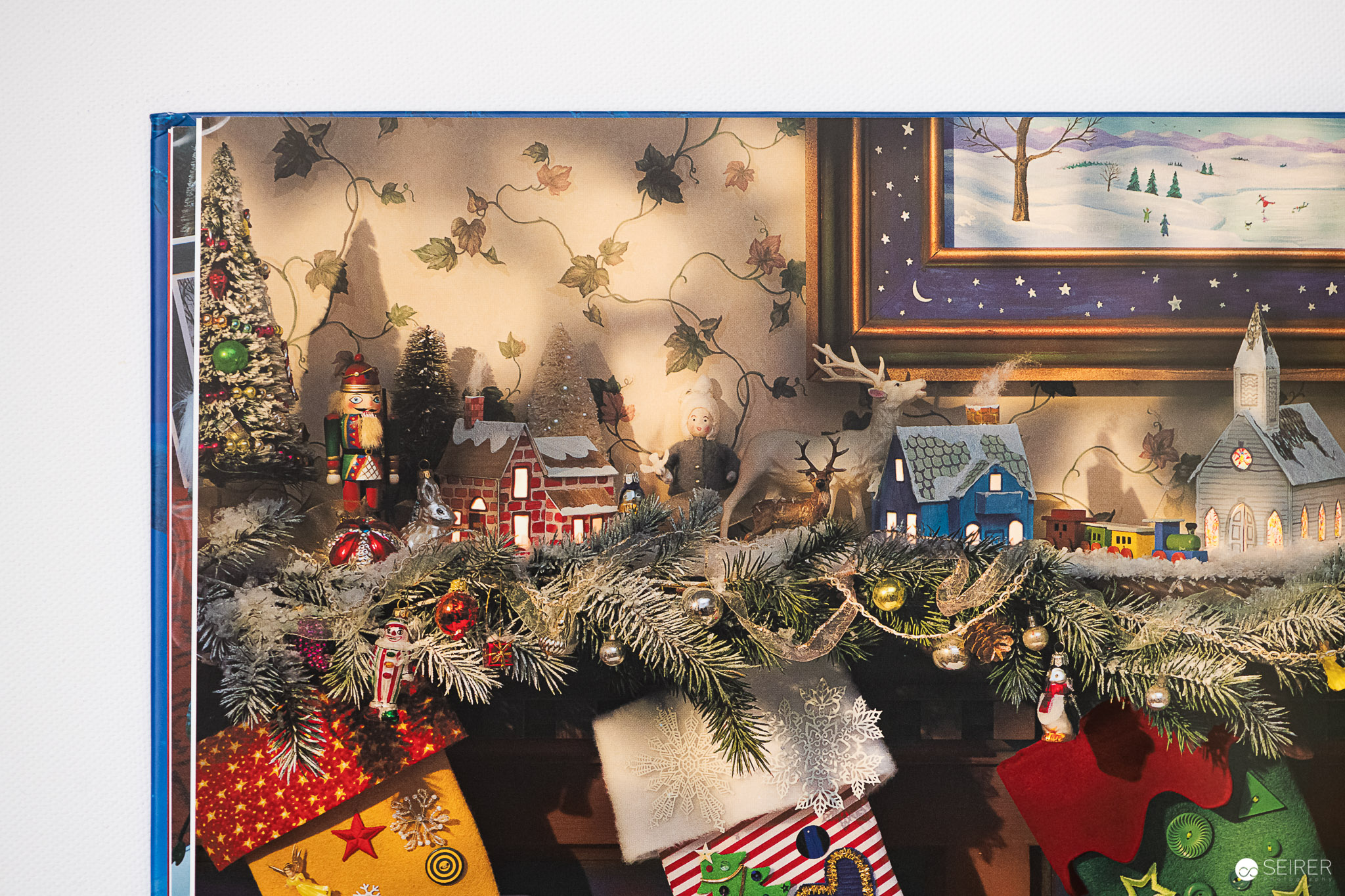 Liebevoll arrangierte Walter Wick einmal mehr Tannenbäume, Weihnachtsmänner, Schneemänner, Spielzeuge, Lebekuchenhäuser, Weihnachtsbaumanhänger, Kartons, Möbel und unzählige weitere kleine und große Elemente zu einzigartigen Wimmelszenen. Sie alle erzählen von der Weihnachtszeit mit ihrem Zauber, ihrem Charme und ihren Geheimnissen. Wir sehen verschneite Landschaften bei Nacht. Wir sehen den Weihnachtsmann in seinem Schlitten durch den Nachthimmel fliegen oder ihn durchs Haus in Richtung Gabentisch schleichen. Wir erhaschen einen Blick in seinen Sack voller Geschenke und sehen die Strümpfe ordentlich aufgereiht am Kamin hängen. In all diesen Motiven, die sich über zwei Doppelseiten erstrecken, sind unzählige kleine Details versteckt, die es zu entdecken gilt. Wer nicht weiß, wo er seinen Blick zuerst hinlenken soll, der findet neben jedem Foto ein Gedicht, das die Szenerie beschreibt und Suchaufträge stellt. Plötzlich ist man vertieft darin, Hasen, Kamele, Sterne, Schneeflocken, Weihnachtsmänner und allerlei mehr zu suchen. Dabei entdecken wir in Schatten oder Wolkenformationen weitere Figuren oder finden im Hintergrund endlich das gesuchte Motiv.